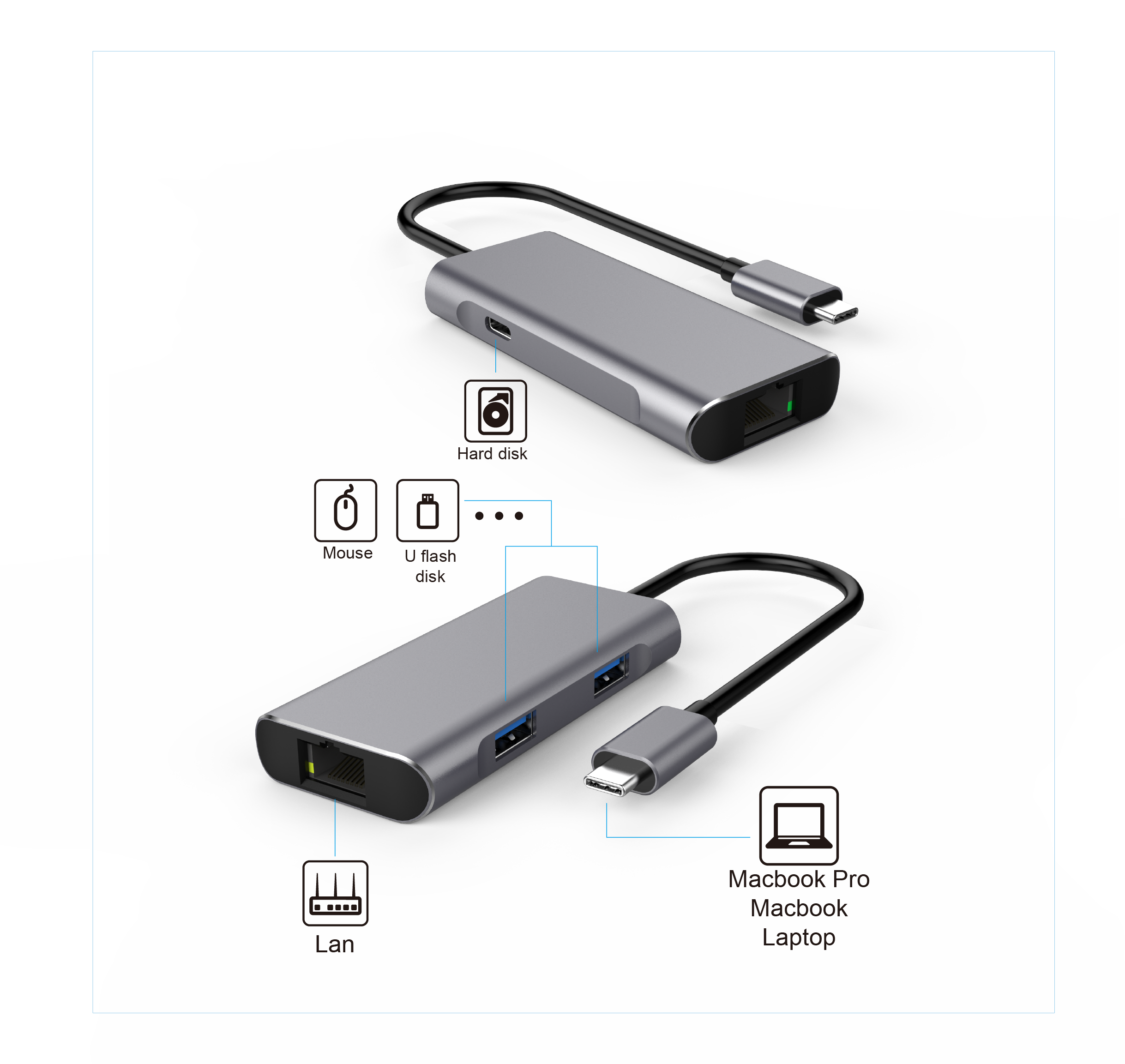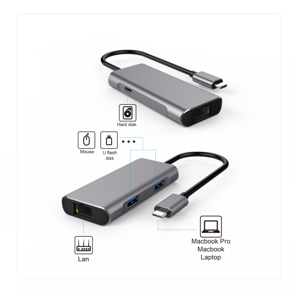 USB-C to USB-A 10G+USB-C 10G+Etherent Dock